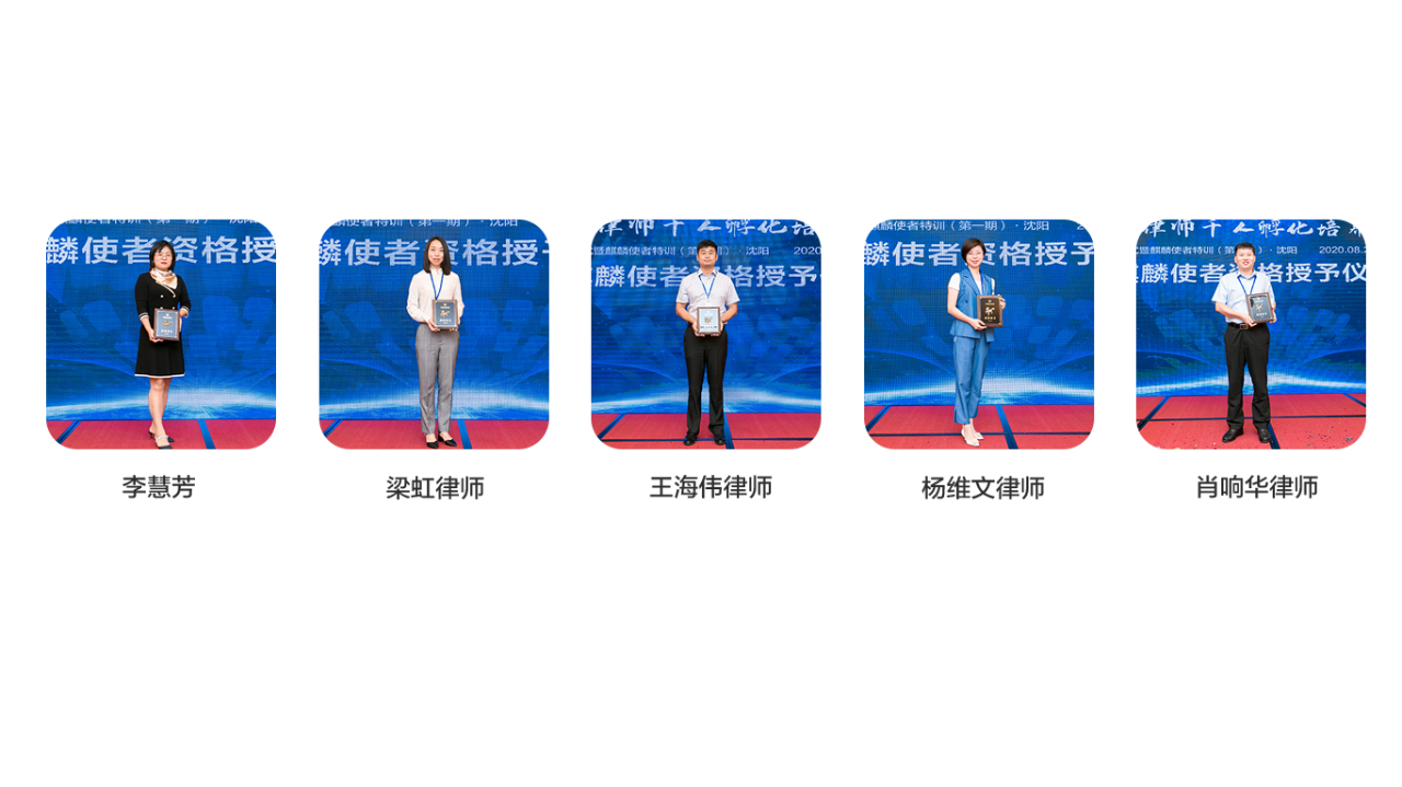 第0001号麒麟使者李慧芳,第0009号麒麟使者梁虹,第0017号麒麟使者王海伟,第0037号麒麟使者杨维文,第0041号麒麟使者肖响华。