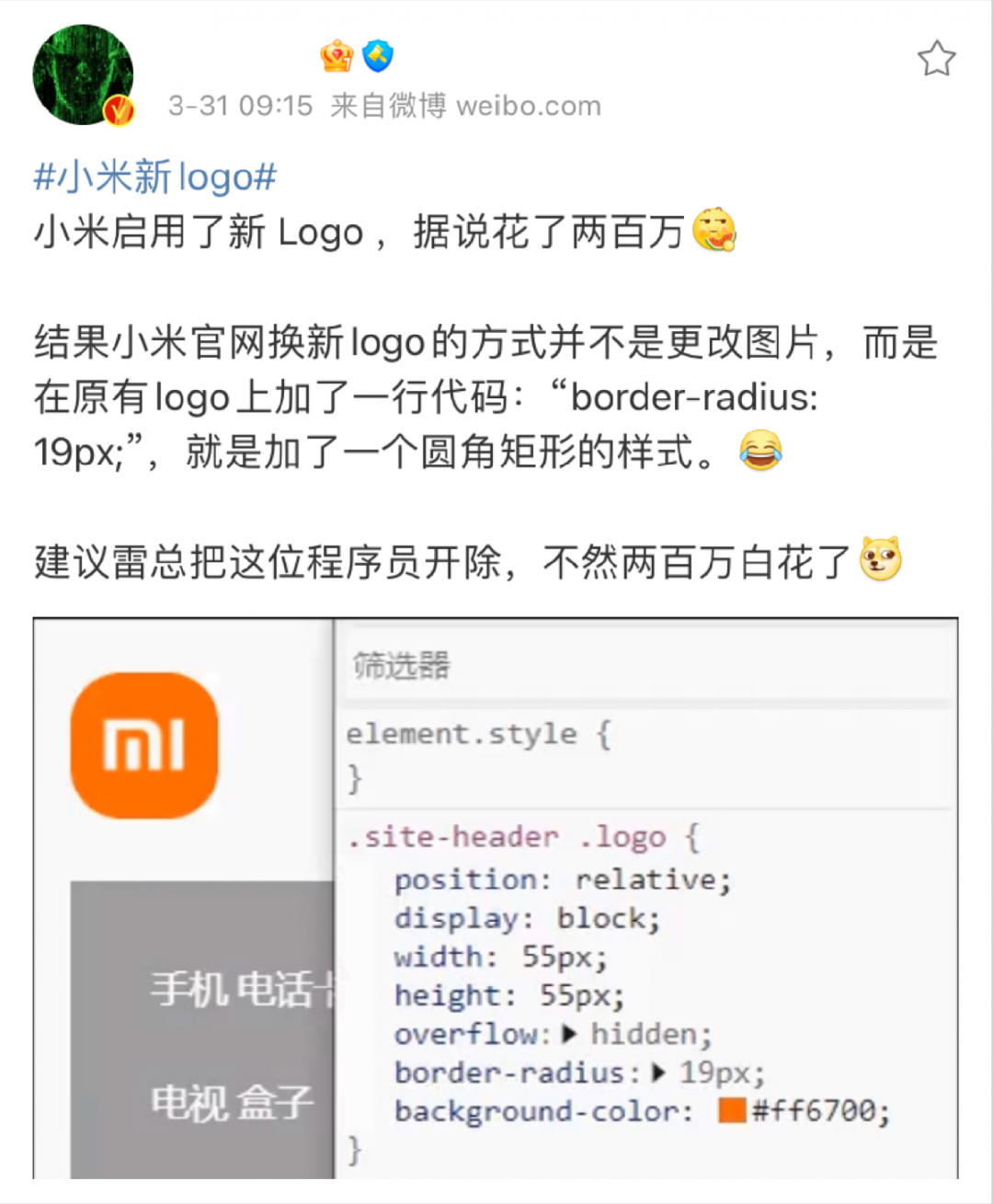 是的,你没有看错!小米新LOGO由方形变成了近圆形。这是小米公司花费200万重金聘请著名日本设计师原研哉设计的,相当于磨圆一个角花了50万!