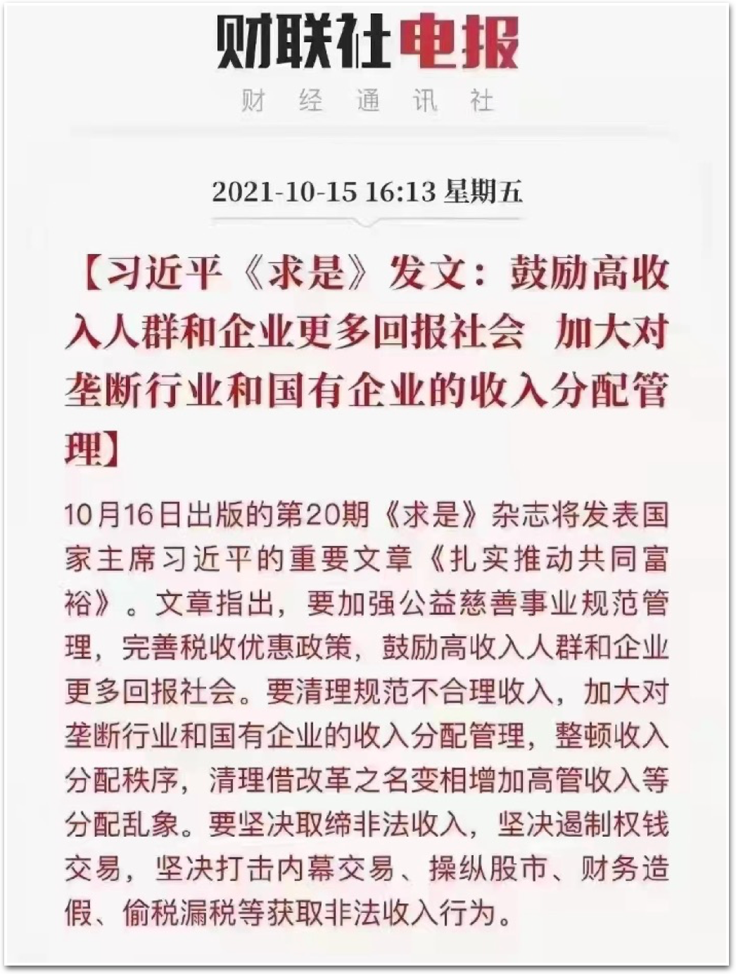 2021年 10月18日,中共中央政治局就推动我国数字经济健康发展进行第三十四次集体学习时强调,要规范数字经济发展,坚持促进发展和监管规范两手抓、两手都要硬,要加强税收监管和税务稽查。
