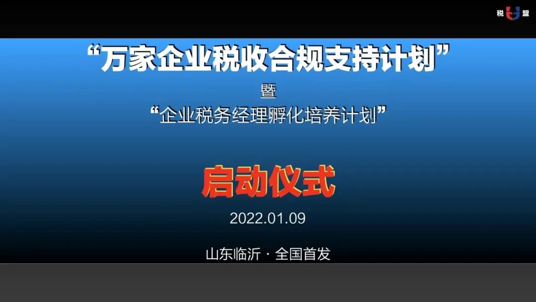 目前,税盟和税与税面向企业联合发起的“万家企业税收合规支持计划”暨“企业税务经理孵化培养计划”启动仪式即将在山东临沂举行,未来,税盟培养的税务律师和税与税培养的税务经理将共同助力企业税收规范化发展,助推税收法治化进程。