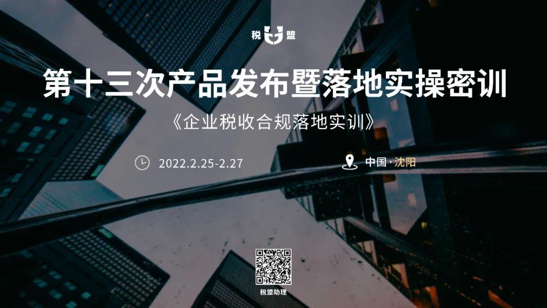 万象更新,学路无尽。税盟定于2022年2月25日至2月27日,在辽宁沈阳举办第十三次产品发布暨落地实操密训。