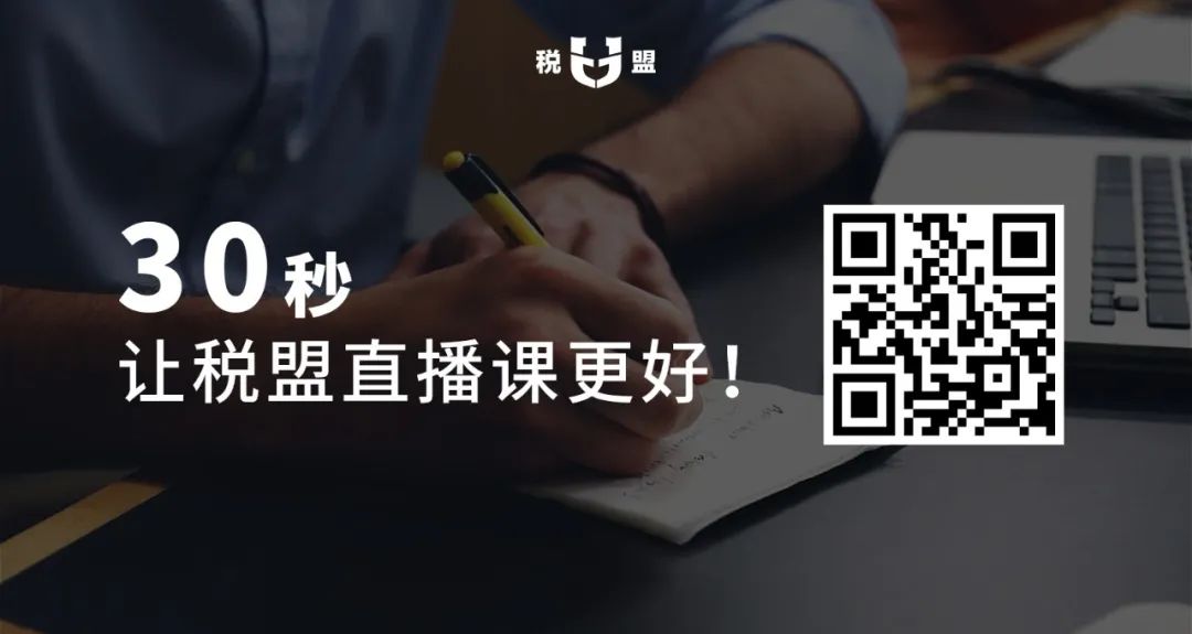 为使各位同仁获得更好的听课感受,提升税盟课程质量,请您长按下图二维码填写调查问卷,全程仅需30秒。