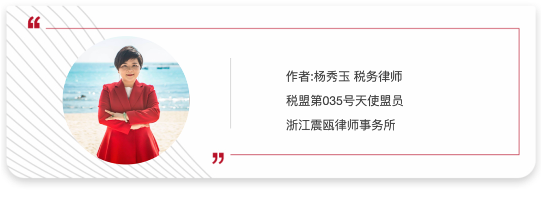本期作者:税盟第035号天使盟员杨秀玉律师