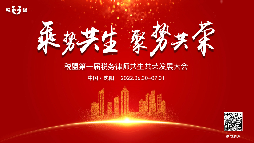 乘势共生,聚势共荣。「税盟第一届税务律师共生共荣发展大会」即将于2022年6月30日至7月1日在辽宁沈阳举办。