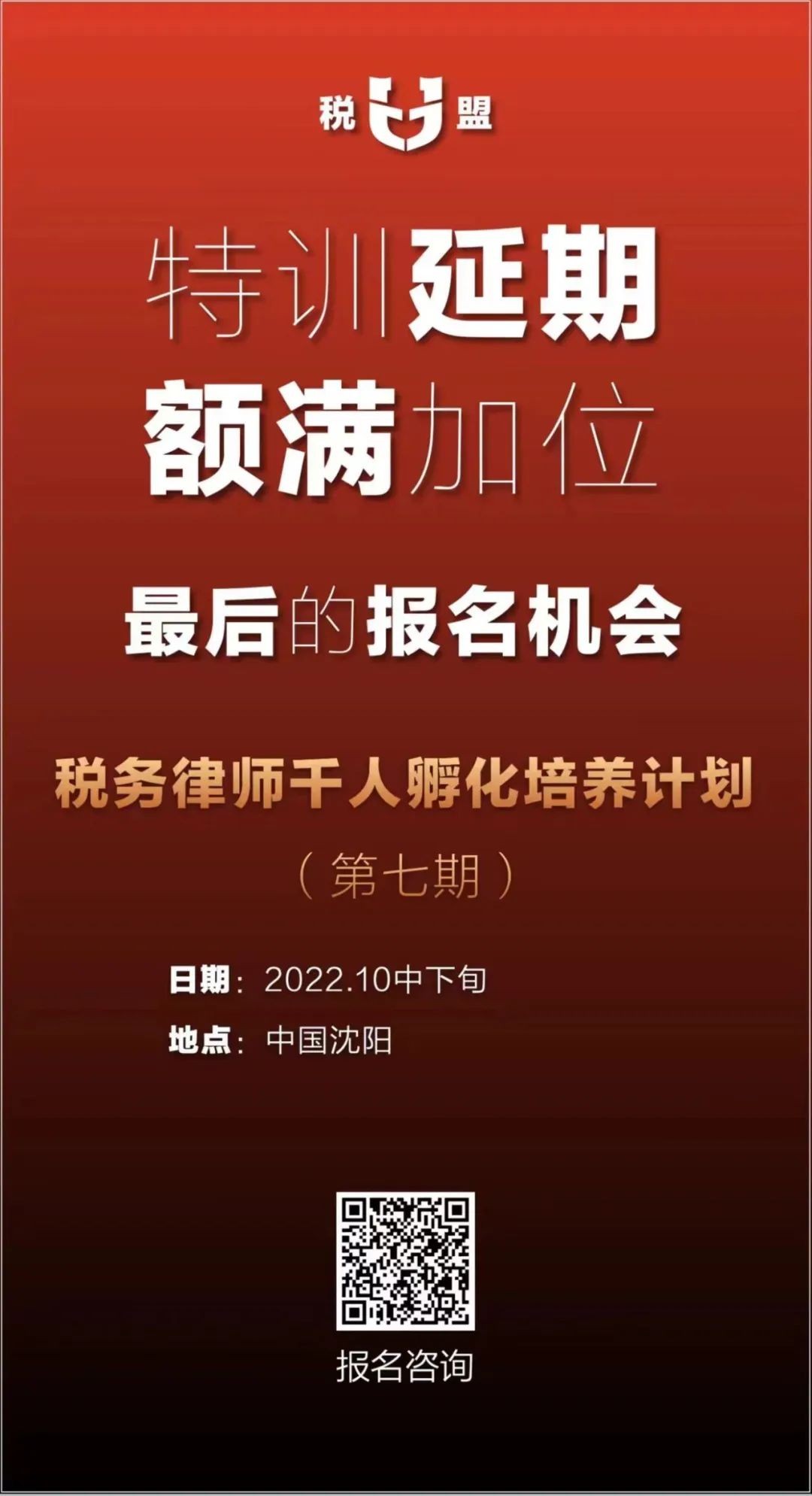 “税务律师千人孵化培养计划”第七期正在招募中,长按下方二维码,添加“税盟助理”咨询报名。