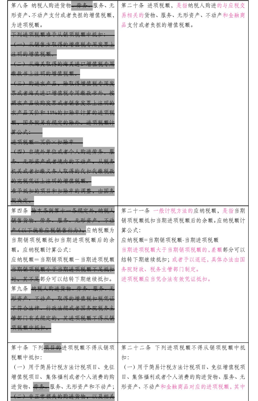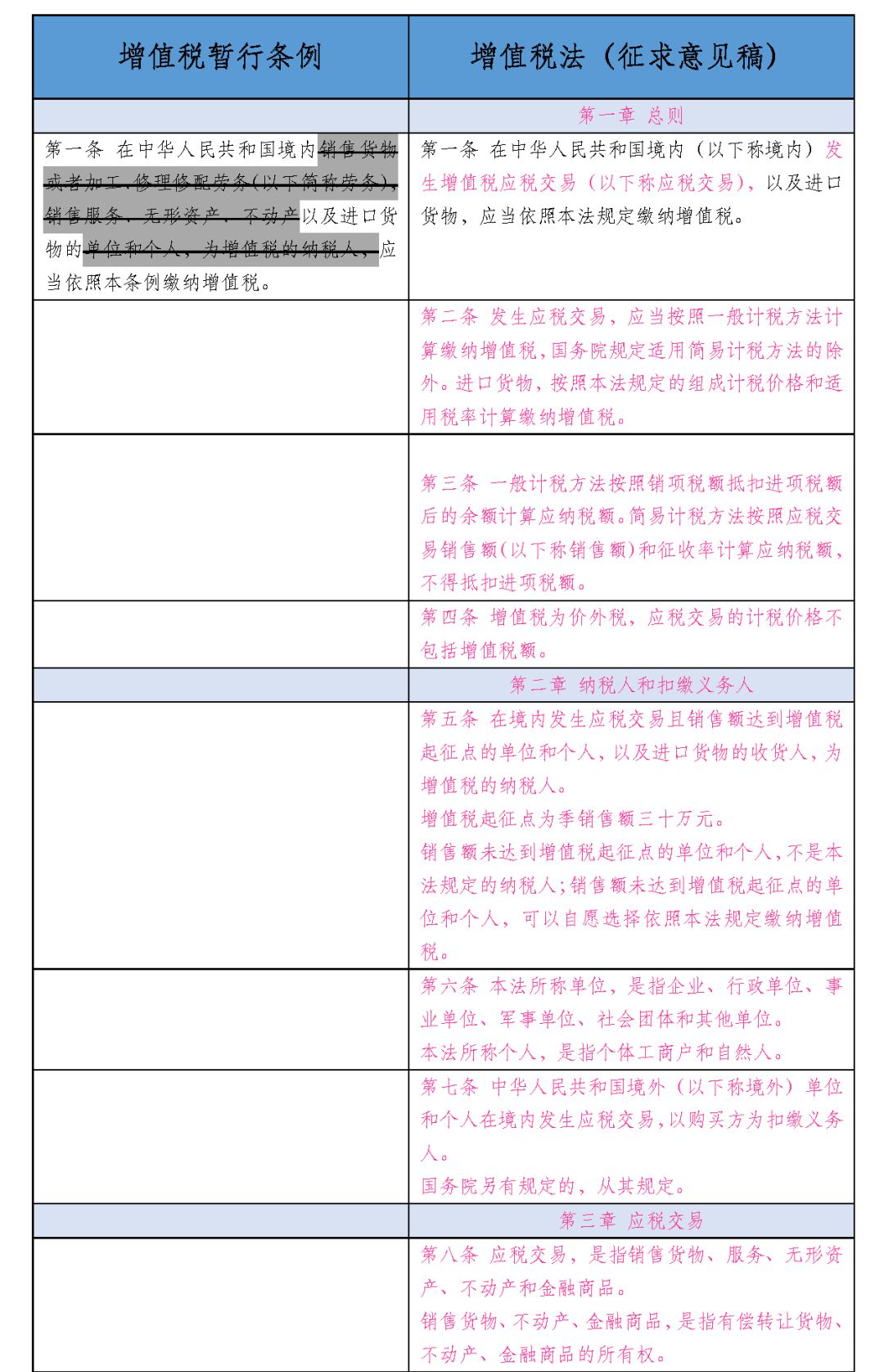 为方便大家了解《征求意见稿》与《增值税暂行条例》变化,我们特将二者不同之处整理列表如下: