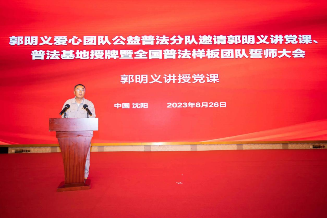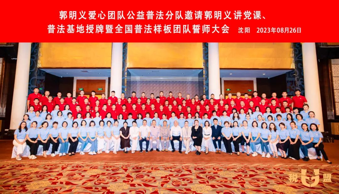 税盟发起以“跟着郭明义学雷锋、争做时代新人”为主题的郭明义爱心团队公益普法分队邀请郭明义讲党课、普法基地授牌暨全国普法样板团队誓师大会。
