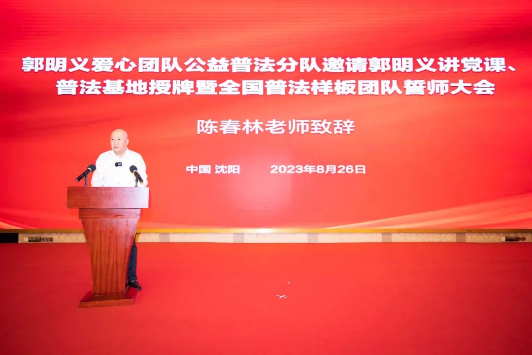 誓师大会上,税盟导师陈春林首先发言,表达了对全国普法样板团队成立的祝贺和期望。他表示,样板团队的成立标志着税盟税务律师有更多机会为社会贡献专业智慧和力量,希望全国普法样板团队能够紧跟郭明义,让雷锋精神在全国范围内得以传承和发展。