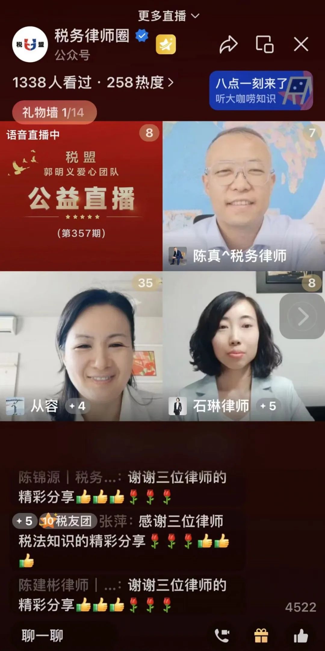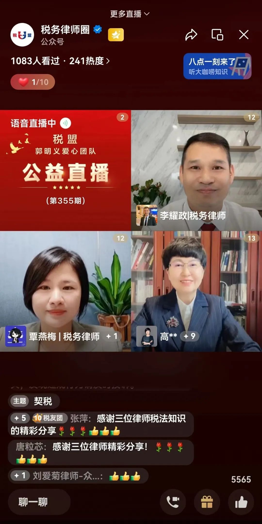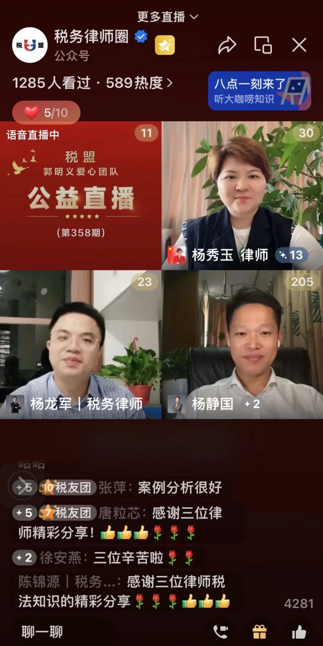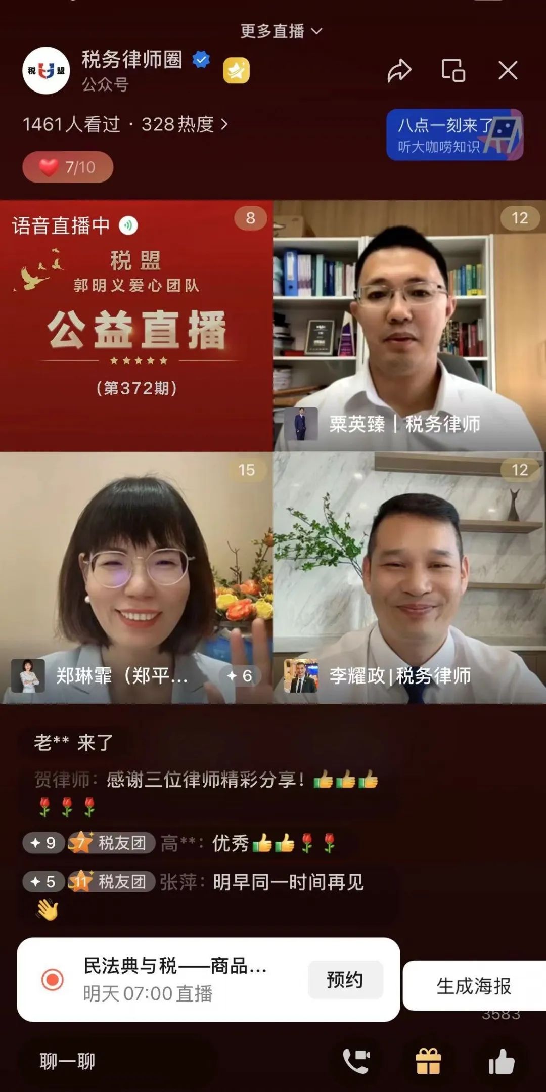 <税盟·郭明义爱心团队税法晨读公益直播部分截图>