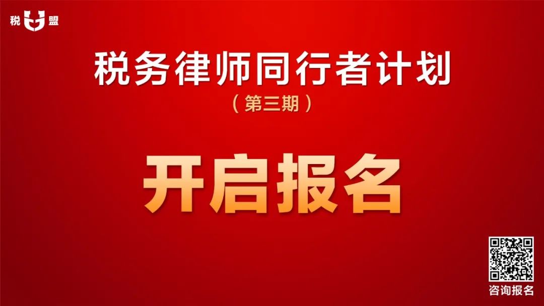 “税务律师同行者计划”第三期正在招募中,因“税务律师同行者计划”第三期课程全面升级,自2024年1月1日起,培养费用正式上调。然而,对于那些热衷于转型税务律师并希望尽早报名的律师同仁,税盟提前开放报名通道。