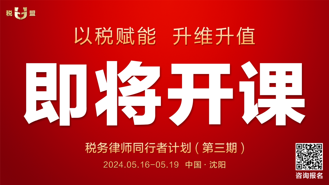 税务律师同行者计划(第三期)即将在沈阳举办 | 税盟
