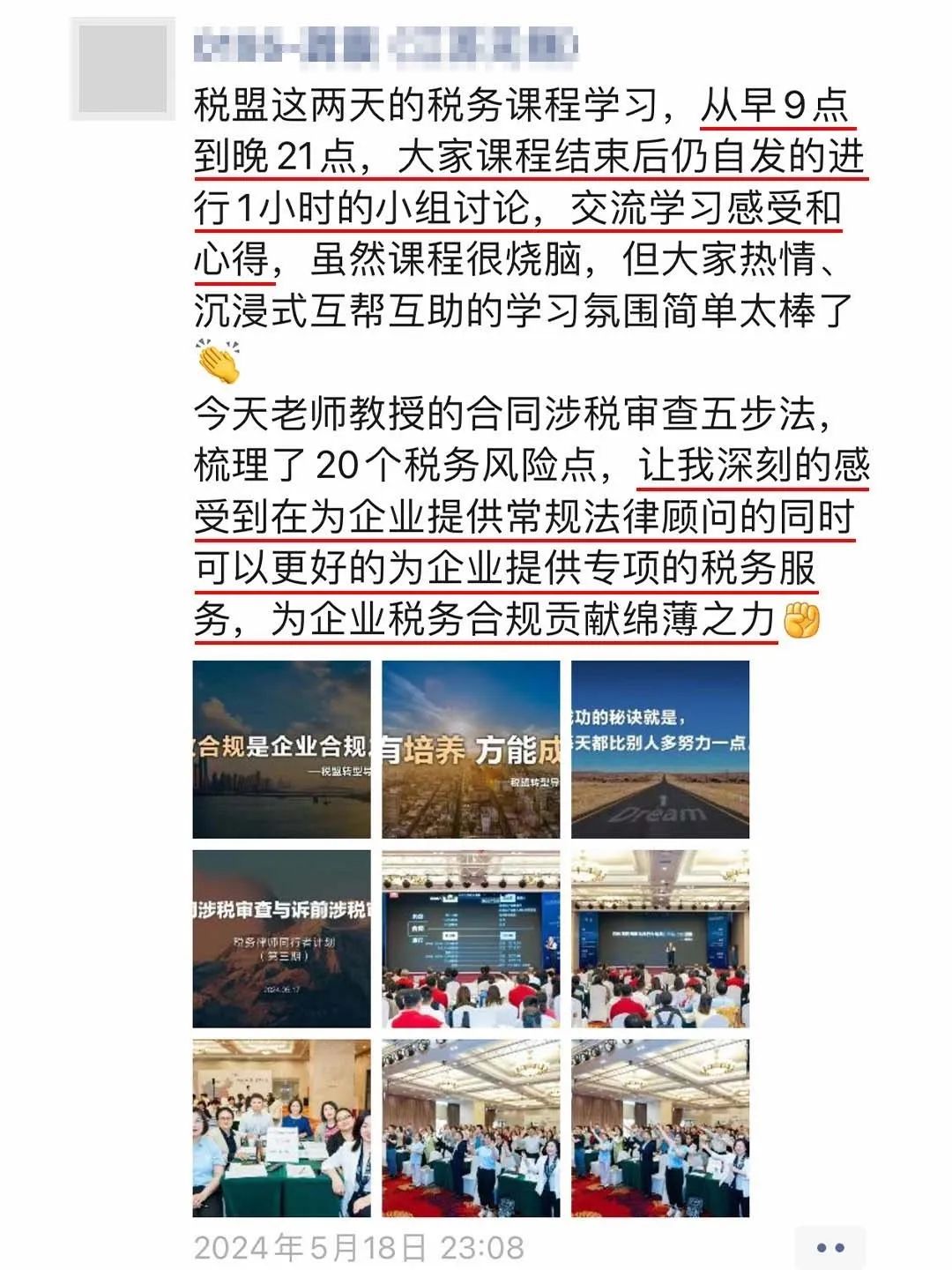 参课律师在面授期间的心得与转变,充分验证了税盟科学化、系统化、体系化培养模式的正确性,在税务律师同行者计划课程中,他们找到了正确的思维、观念、方法论,学到了实用的实务技能与技巧,明确了自身追求和期待的职业发展方向。