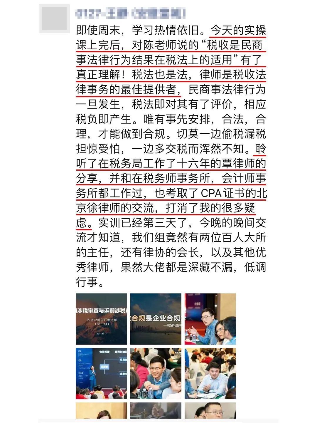 “深刻感知到律师懂税的重要性,赢了官司输了税,懂税为创造性解决问题提供了新思路。”