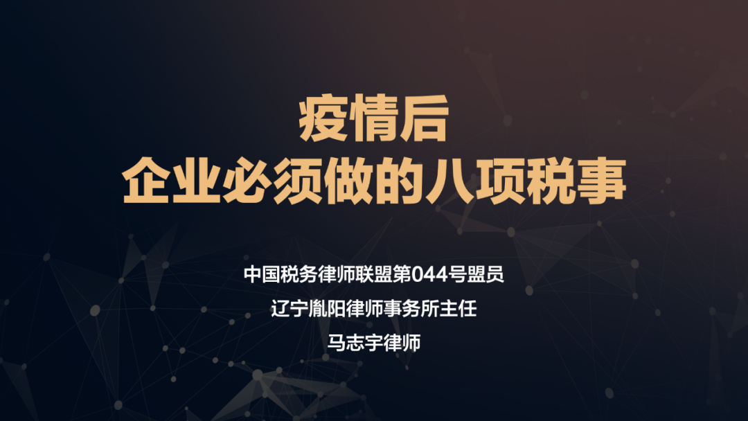 联盟第044号天使盟员马志宇律师首次在「税务律师讲堂」进行线上直播授课,主讲的《疫情后,企业必须做的八项税事》课程,获得盟员及听众的一致好评,扩大了自己在行业内外的知名度,收到良好的宣传效果。