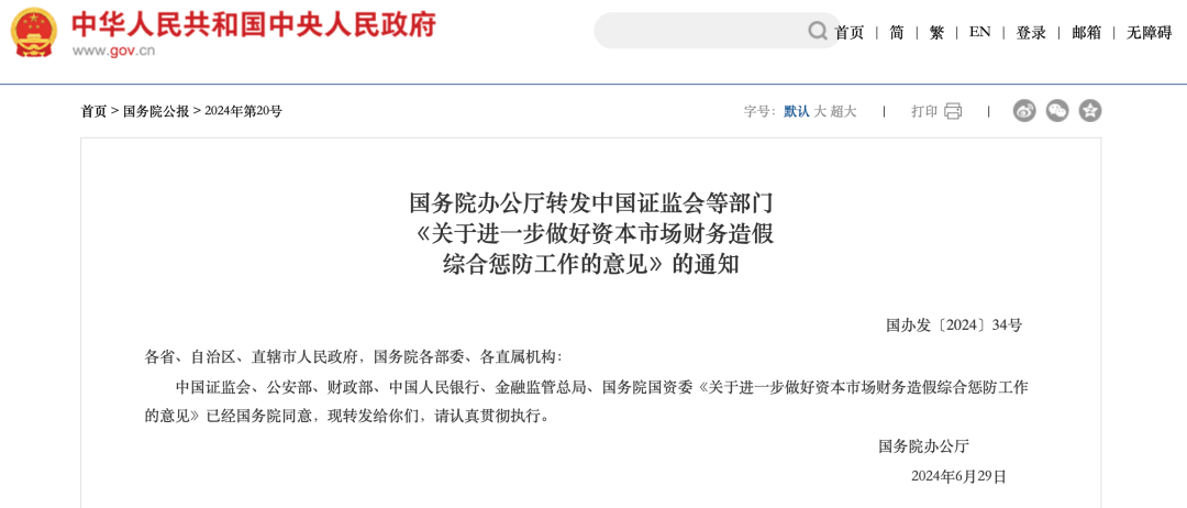 与此同时,国务院六部委联合发布《关于进一步做好资本市场财务造假综合惩防工作的意见》,明确提出“零容忍”监管常态化。