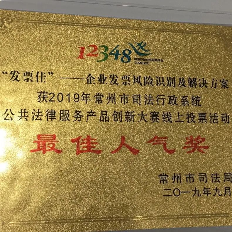 我们也获得了一些工作成果。2019年,团队制作了一个以联盟为背景的“发票佳”法律服务产品,参加了常州市司法局组织的创新法律服务产品比赛,获得了最佳人气奖。